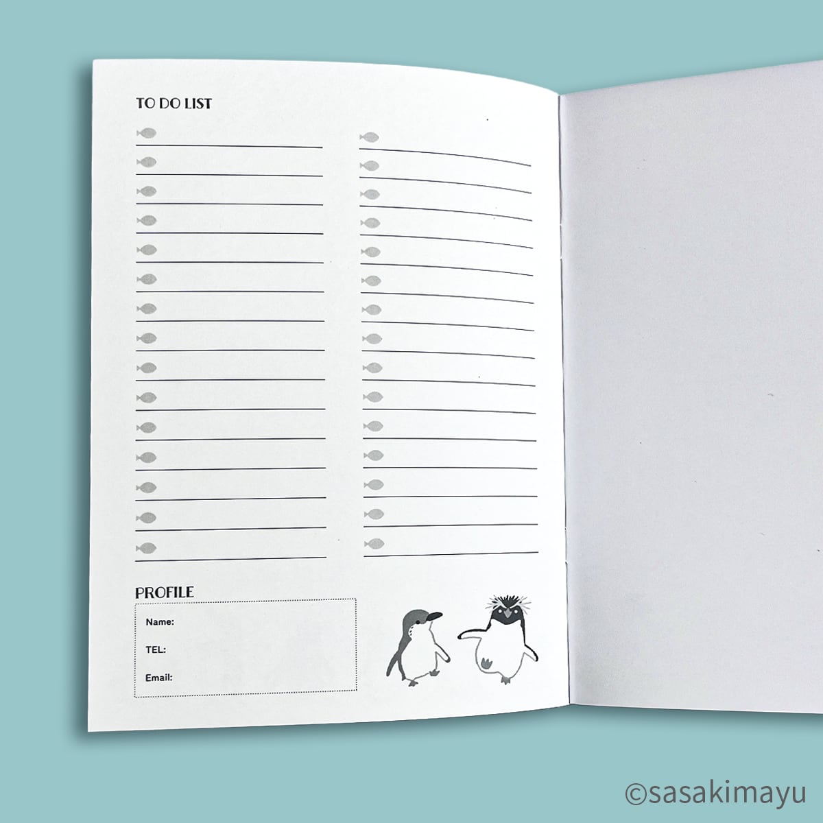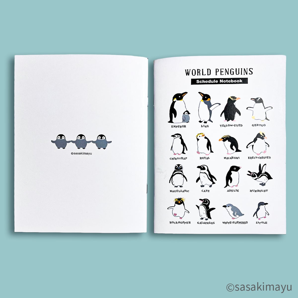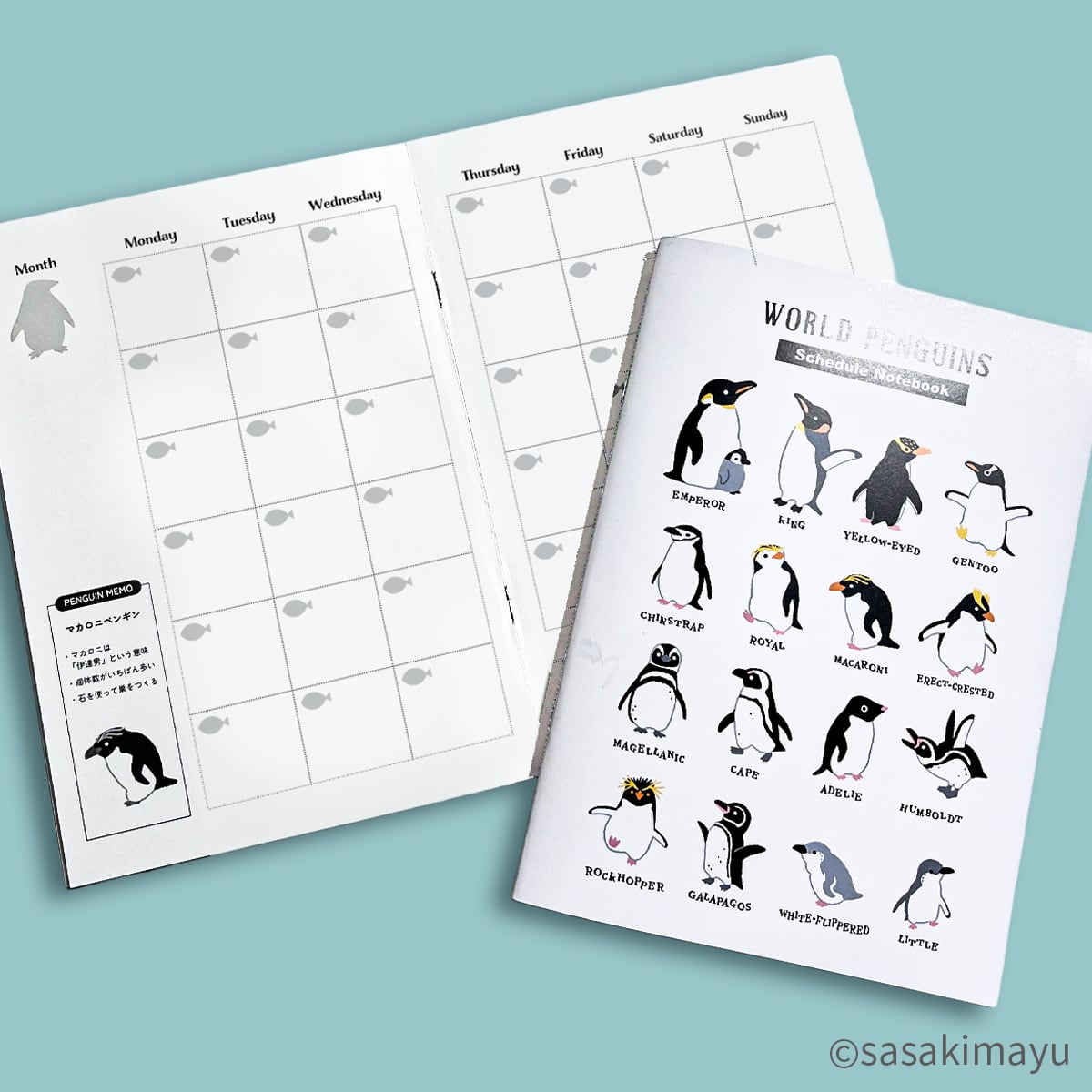 シンプルなデザインで、スケジュールページはペンギンの豆知識つき!